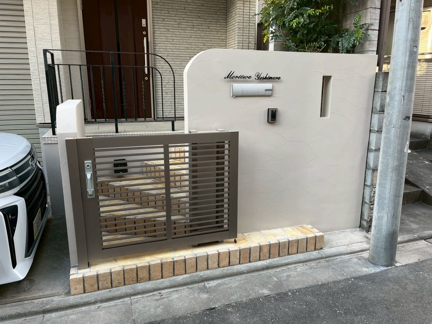 階段は歩きやすさを意識した施工とし、門まわりのデザインも整えることで全体の印象がすっきりとした外観になりました。